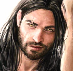 | Hair Color | Dark brown, almost black hair, with strands of silver and white showing. Worn scruffy and disheveled fashion to his shoulders. | |
