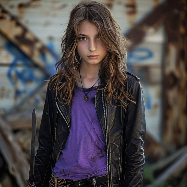 | Back Pack Contents | Suitcase: 3x shorts 2x black tights. 2x black jeans 4x tee shirts 2x button down shirts 1x purple dress A pair of purple sandals. PJ’s 6 pairs of underwear 5 bras 2 sports bras Toiletries Three hair feather strands, in rainbow colours. Jewellery A jumper, oversized in her favourite colour purple. 2 pairs of sneakers, one in purple, one in teal green. Backpack: Her personal Diary. A small travel Toiletry pack. Feminine hygiene products. Hairbrush and hairbands her passport Small over the shoulder purse with money and IDs. Normally she wears Black Jeans, purple doc martins, dark purple tee shirt under a black leather jacket. Around her neck she wears a necklace with a small gold cross. She has purple star stud's in her ears. |